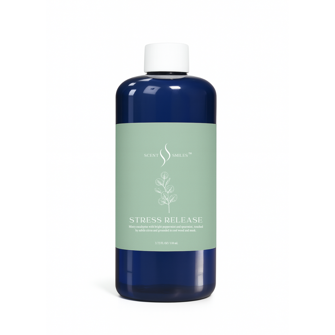 Stress Release is a soft, comforting scent designed to quiet the noise and help you settle in. Notes of lavender, chamomile, and clean white woods come together to create a peaceful atmosphere that feels warm, steady, and restorative.